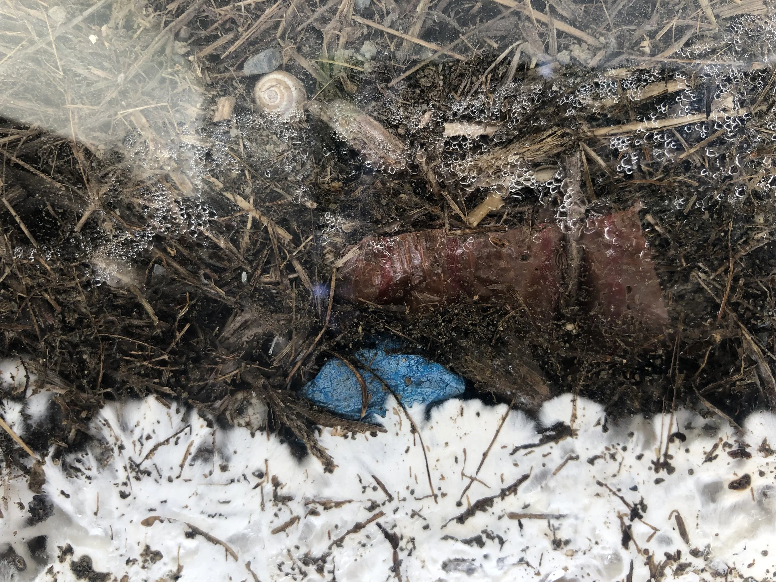 Second side is made of top soil from Langa which contains mostly trash and urban waste. This section hosts Ganoderma, which feeds off the trash and proliferates across the different layers of the soil.